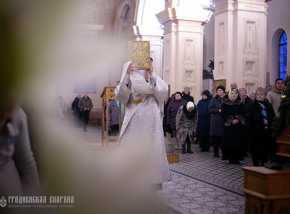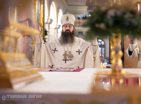 13 января, в субботу по Рождестве Христовом и пред Богоявлением. Отдание праздника Рождества Христова. День памяти Преподобного Паисия Святогорца, архиепископ Гродненский и Волковысский Антоний совершил Божественную литургию в Покровском кафедральном соборе города Гродно.