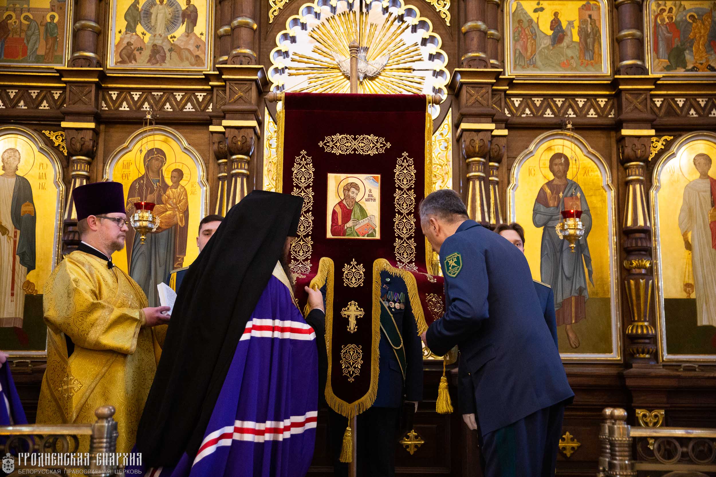 12 февраля в кафедральном соборе Покрова Пресвятой Богородицы г. Гродно архиепископ Гродненский и Волковысский Антоний совершил благодарственный молебен и освятил хоругвь с изображением святого апостола и евангелиста Матфея для Гродненской региональной таможни.