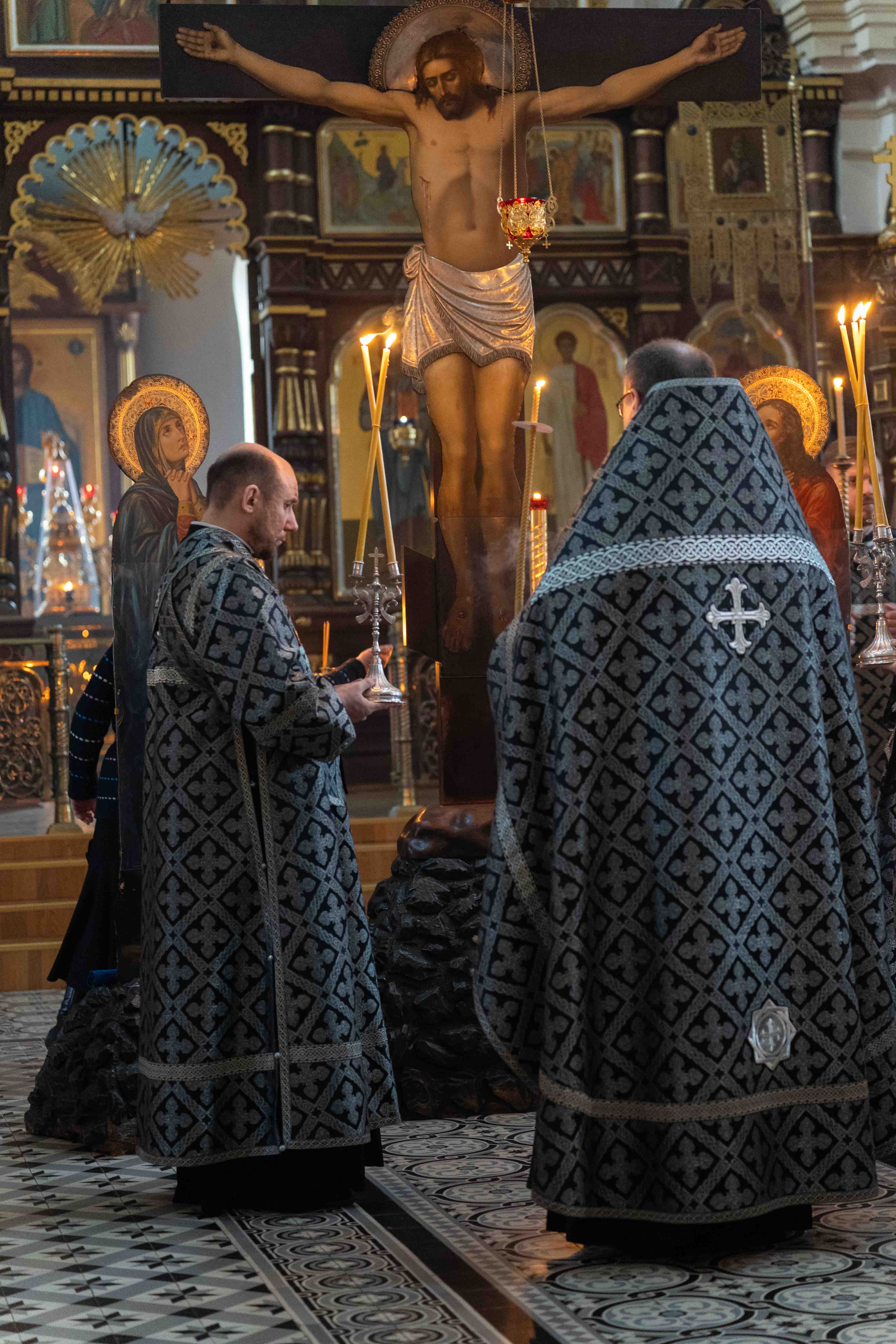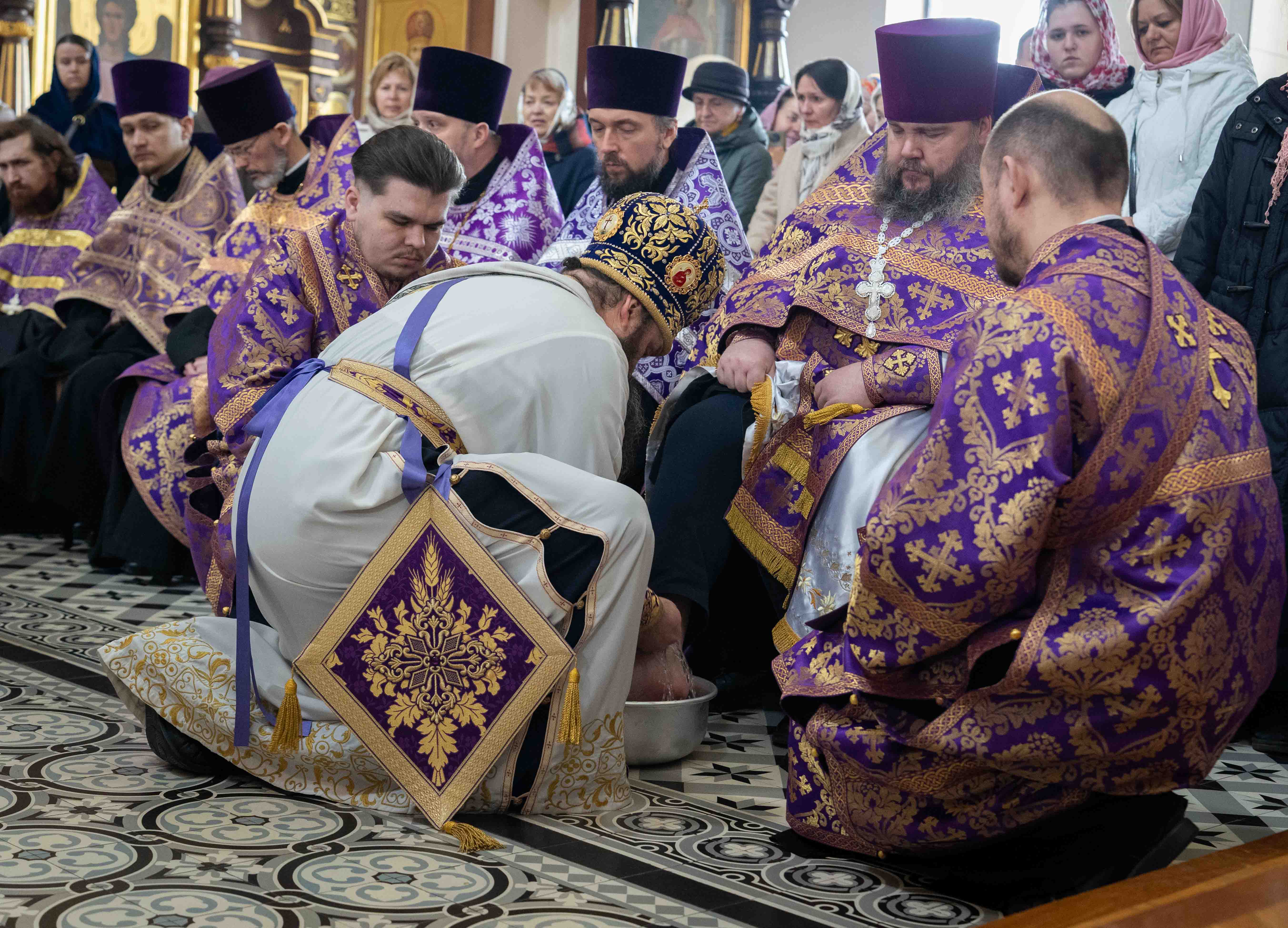 Богослужения Великого Четверга и утреня Великого Пятка с чтением 12 Страстных Евангелий в фоторепортаже Вадима Папко.